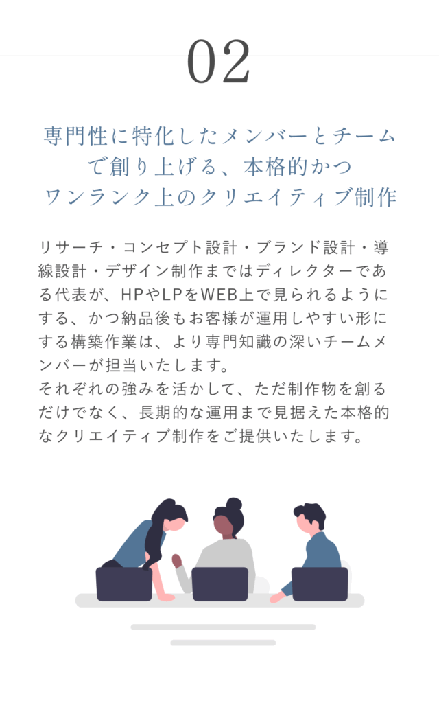 お客さまのビジネスとまっすぐ丁寧に向き合います。今やった方が良いこと、やらなくて良いこと、ひとつひとつに優先順位をつけ、一歩ずつ真摯にサポートしていきます。